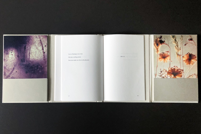 - Double couverture cartonnée et entoilée munie deux pochettes pour les photographies, reliure en couture en huit, titrage en flocage