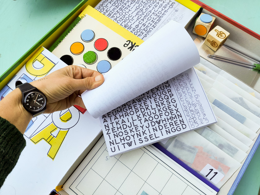 bîtes de compartiment en certon brut, cartes de jeu "Memory", reliure dos collé (bloc-note pages détachables)