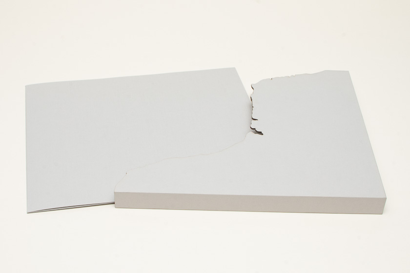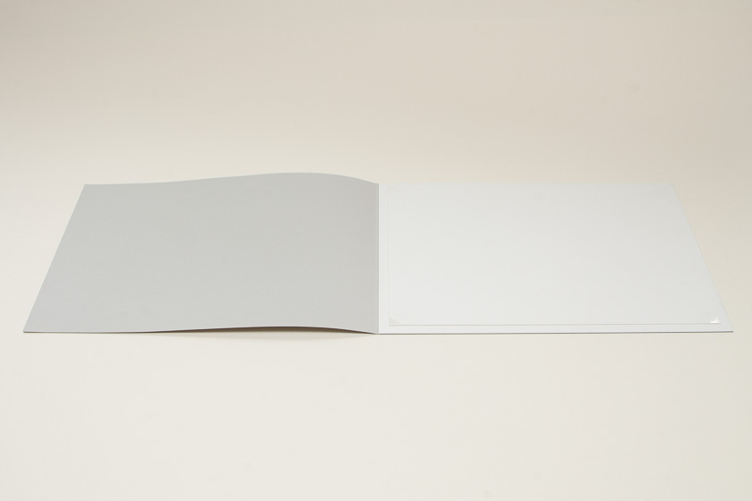 - Boîtier-fourreau sur-mesure en carton avec une découpe laser, farde avec coins photo pour une photographie originale, titrage en dorure à la machine
