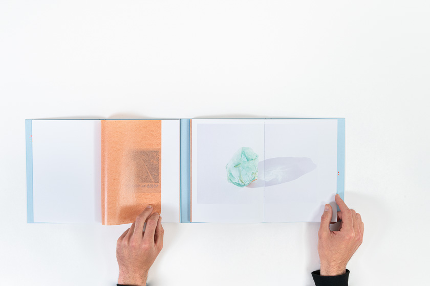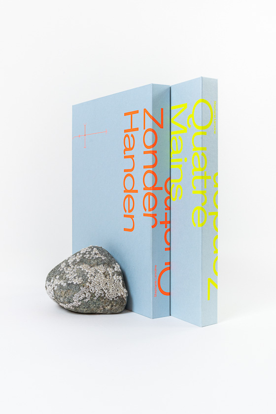 - Couture croisée, double couverture cartonnée en papier, titrage en sérigraphie (imprimé par l'artiste)