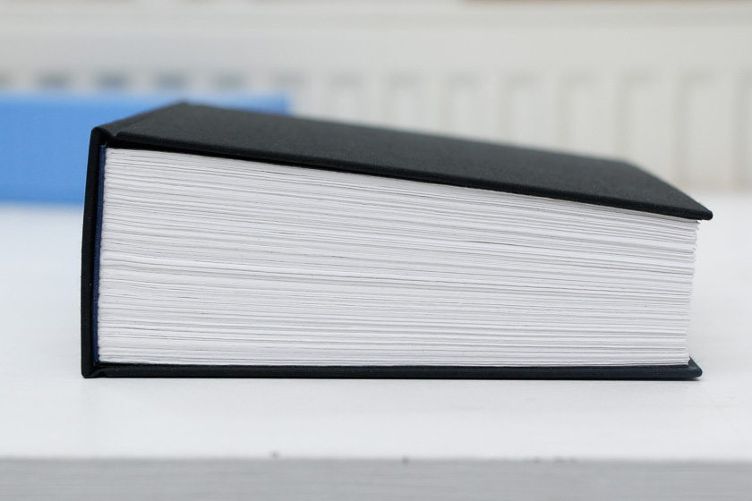 - Emboîtage dos carré cousu, couverture cartonnée en toile, titrage en dorure à la machine,
