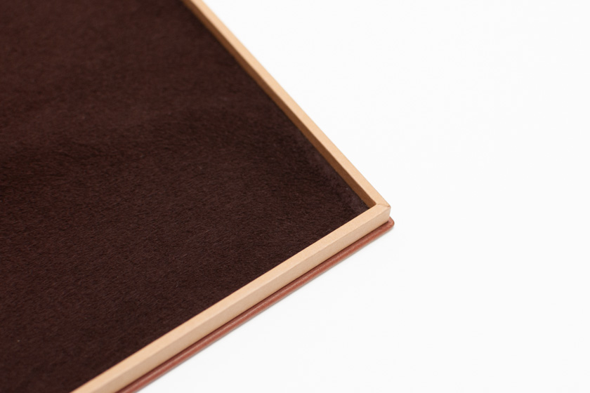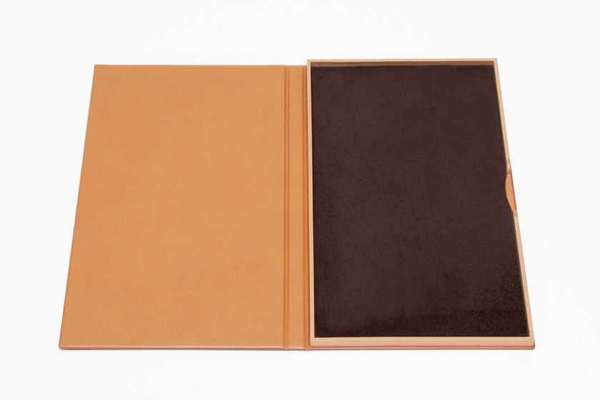 - Boîte cartonnée, couverture en cuir doublée, chèvre velours au fond de la boîte,