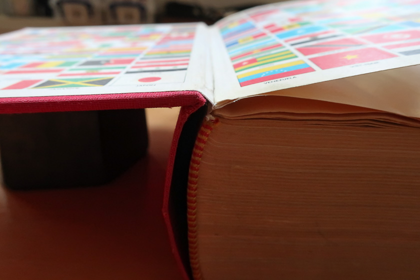 Home Works Restauration des livres Restauration :Gardes déchirées Techniques reliure Restauration des gardes de couleurs déchirées, renforcement des fonds avec bougran,replacement du corps séparé de la couverture